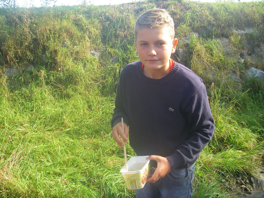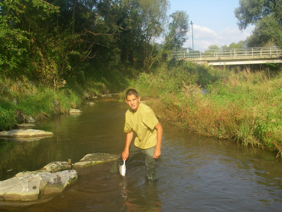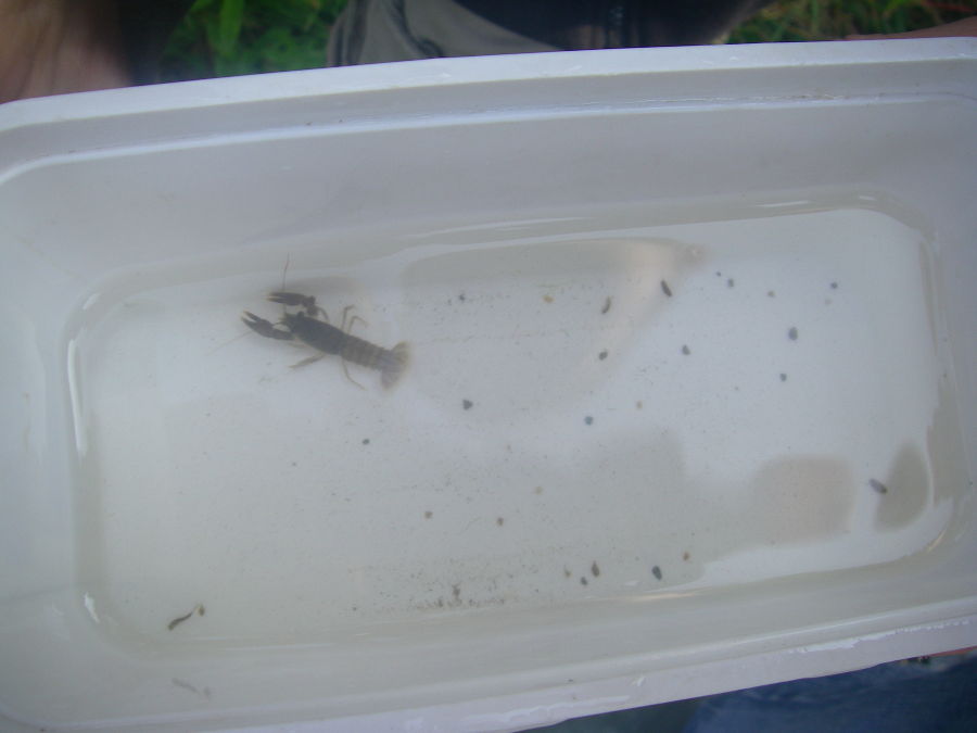 Die Begeisterung war sehr groß, als die ersten Tierchen mit den Keschern herausgefangen wurden. Zu sehen gab es Bachflohkrebse, Eintagsfliegenlarven, kleine Fische und auch einen großen Flusskrebs.