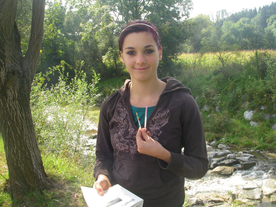 Die chemisch-physikalische Gewässergütebestimmung erfolgte am gleichen Bachabschnitt. Hier wurden anhand von Teststreifen pH-Wert, Wasserhärte und Nitrat/Nitrit-Wert bestimmt sowie die Leitfähigkeit.