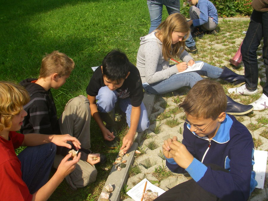 Einer der Höhepunkte war wohl das „Steine-Klopfen" - mit Hammer, Schutzbrille und viel körperlichem Einsatz wurde selbst der härteste Stein geknackt, um dann die unterschiedlichsten Eigenschaften der Steine zu erkunden.