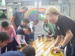 Im Experiment wurde dann erprobt wovon es abhängt, wie schnell und ob Wasser überhaupt versickert und wie eine „Minikläranlage" funktioniert. Verdunstung und das Entstehen von Regen waren ebenso Gegenstand eines kleinen Versuches. Abschließend brachten die Kinder auch noch eine selbstgebastelte Quelle zum Sprudeln - wir sind der Meinung, dass war Spitze!