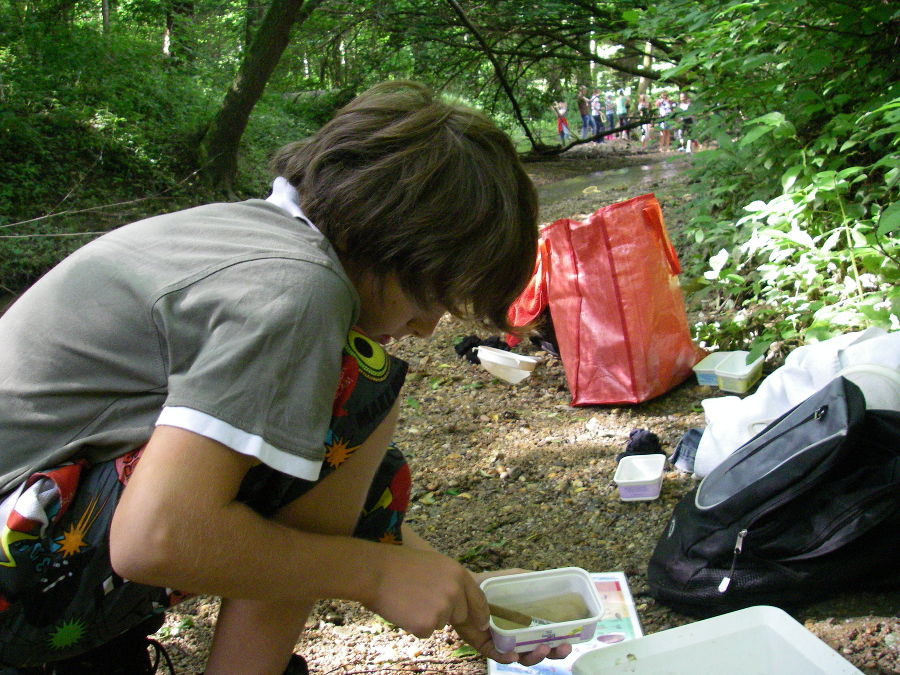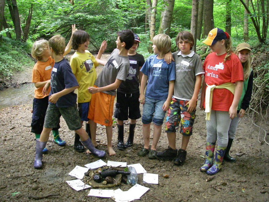 Nach einem halbstündigen Marsch, der uns an einen sehr schönen Bachabschnitt im Wald führte, wurde die Klasse in 2 Gruppen geteilt welche unterschiedliche Aufgaben zu erfüllen hatten.