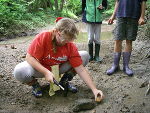 Die biologische Bacherkundung gestalte sich anfangs etwas mühsam weil kein einziges Wassertier zu entdecken war. Als den ForscherInnen dann endlich die erste Libellenlarve ins Netz ging war der Bann gebrochen und die Sache begann den Kindern sichtlich Spaß zu machen. So wurden neben der Bachlibellenlarve auch noch Prachtliebellenlarven, Egel, unterschiedliche Eintagsfliegenlarven, ein Fülle an Bachflohkrebsen und einiges mehr gefunden.