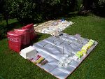 Nachdem sie uns über Wochen bei zahlreichen Einsätzen gute Dienste geleistet hatten, war es an der Zeit, Kescher, Pinsel und Co einer sorgfältigen Reinigung zu unterziehen. Bei strahlendem Sonnenschein packten wir - Angela und Leo - alle Outdoor-Utensilien in unseren fahrbaren Untersatz und machten uns auf den Weg nach Waltendorf. Dort angekommen, wurden wir von Leos Mutter herzlich willkommen geheißen und mit Erfrischungen versorgt.