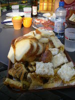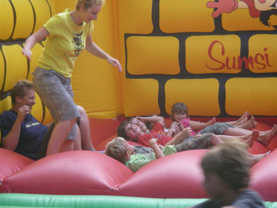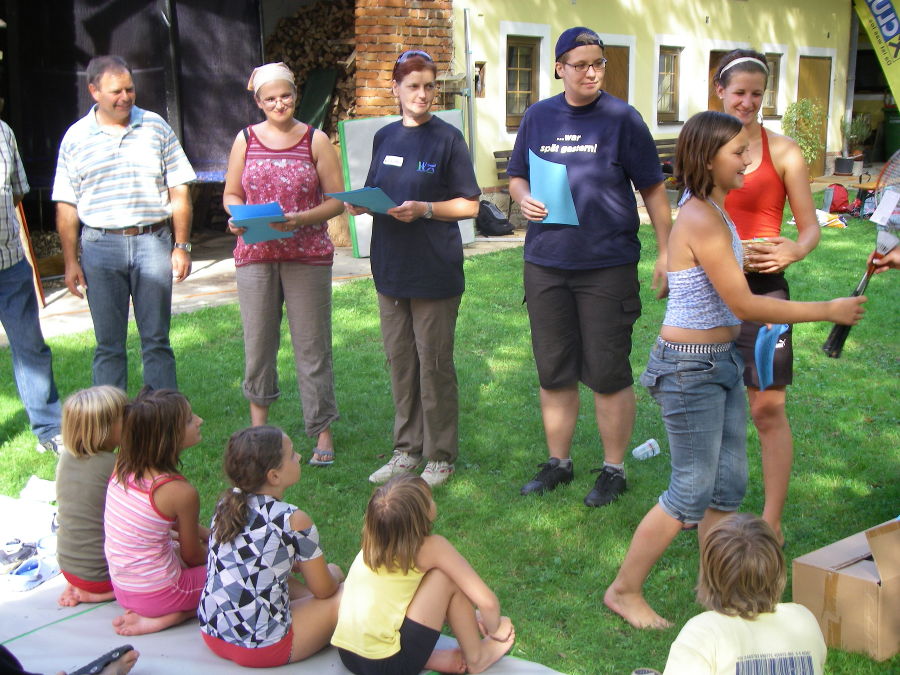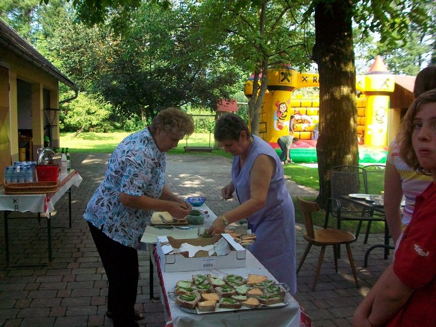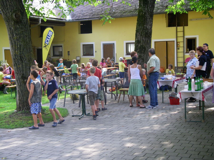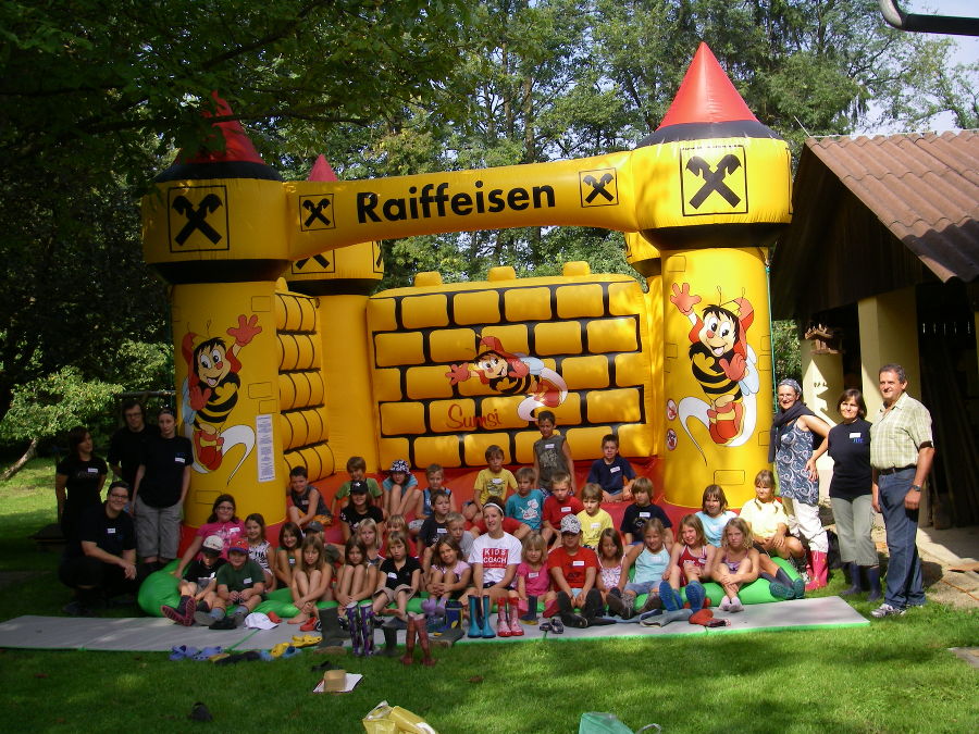 Solche Verausgabungen mussten natürlich belohnt werden. Die Familie Schmidlechner, bestens bekannt für ihre Gastfreundschaft, versorgte uns alle mit wahren Köstlichkeiten. Dieser Art gestärkt konnten die Kids wieder ihren Energien freien Lauf lassen, sei es in der Hupfburg, bei Spielen mit dem Kids Coach oder etwas bedächtiger beim „Woazbrotn" am Lagerfeuer.