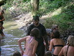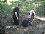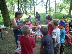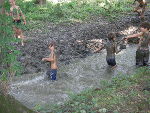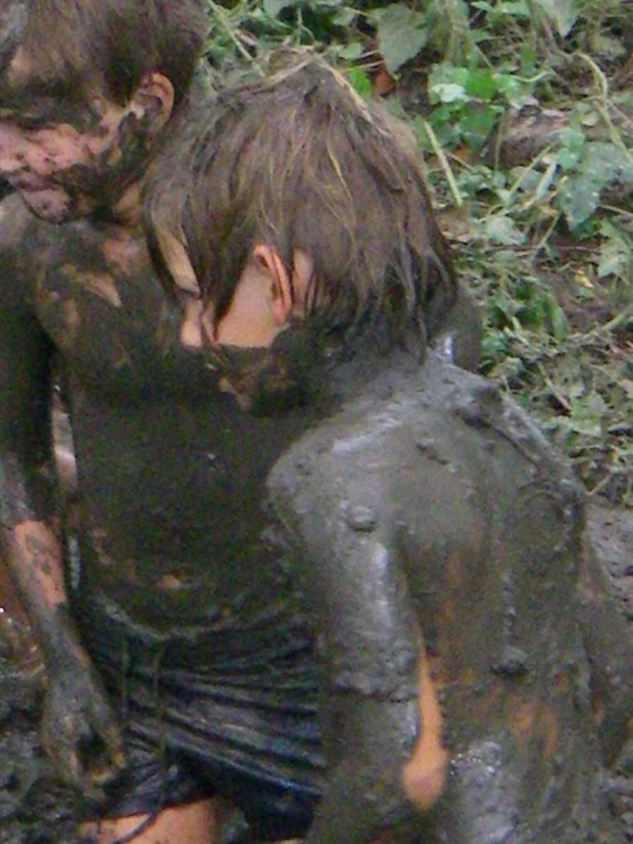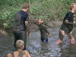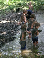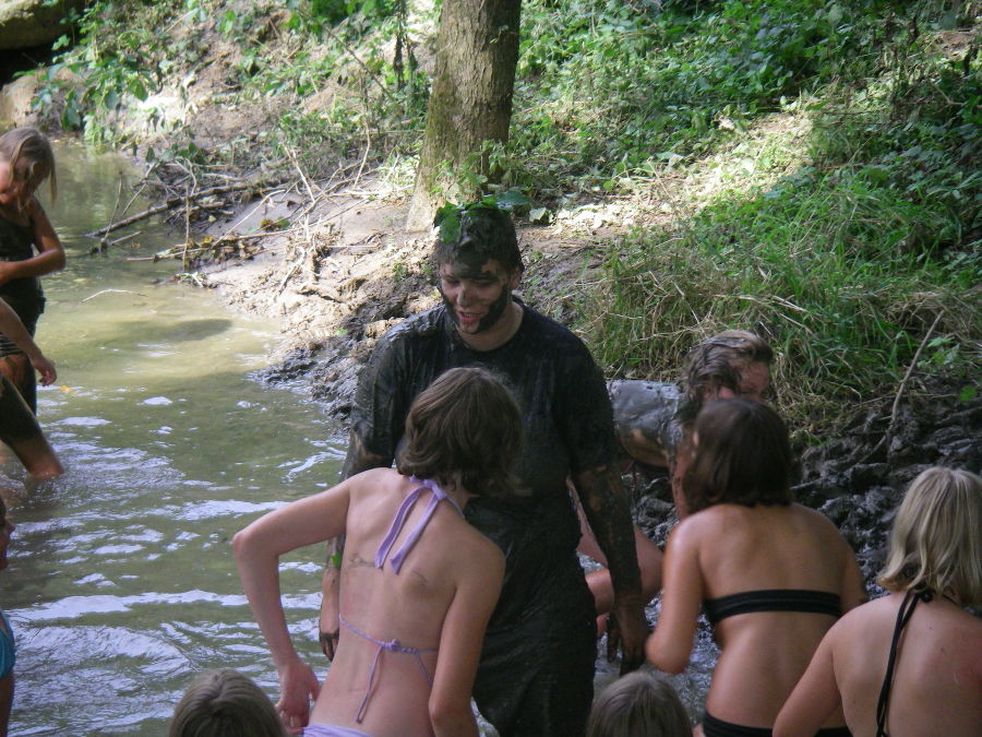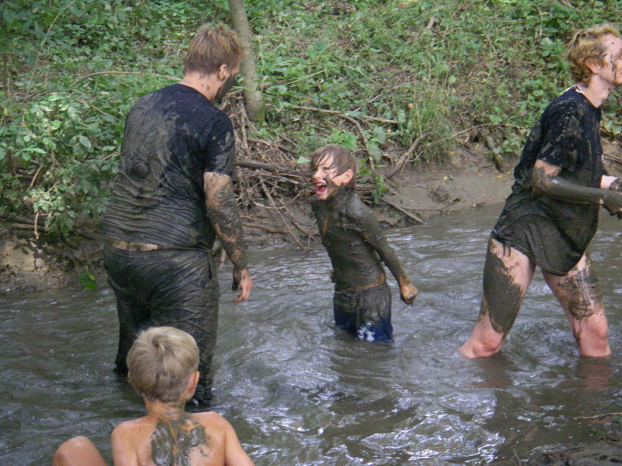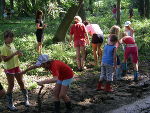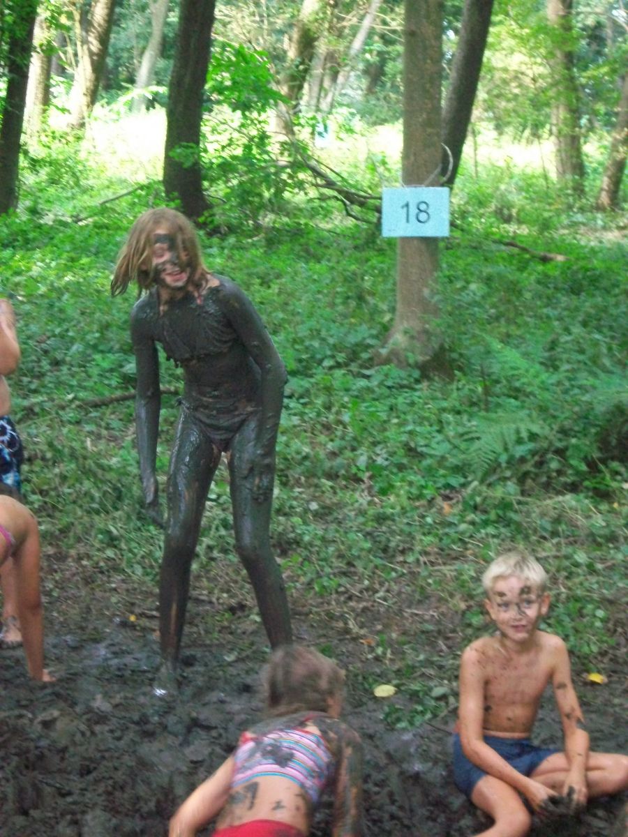 Zum krönenden Abschluss durften sich die Kids bei einer Schlammschlacht richtig austoben. Selbst die Betreuerinnen hatten ihren Spaß daran, sich mit den Kindern im Schlamm zu suhlen, was wahre Begeisterungsstürme hervorrief. Kleine „Schlammmonster" mussten sich dafür natürlich eine kalte Dusche mit dem Wasserschlauch gefallen lassen, aber bei diesen sommerlichen Temperaturen war auch das ein reines Vergnügen.