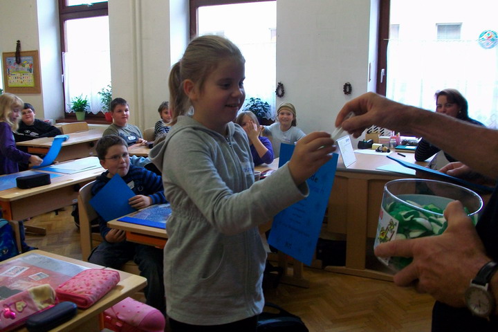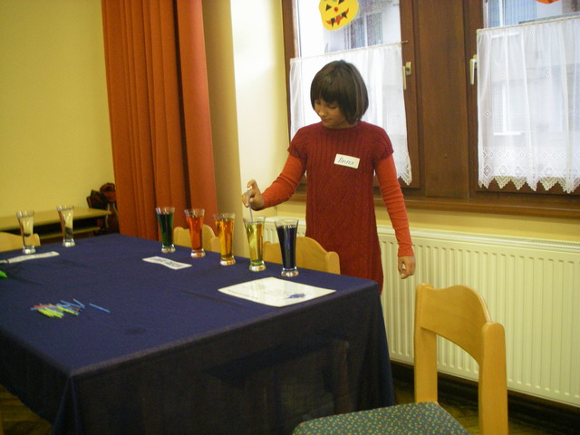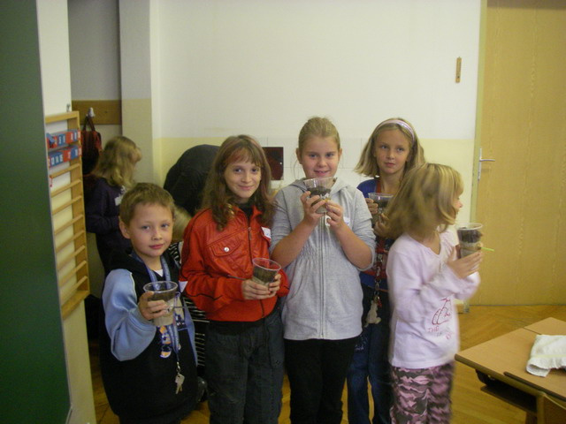 Beim Themenkreis „Wasser mit allen Sinnen" stellten die Kinder zunächst fest, dass nicht alles so schmeckt, wie es aufgrund der Farben vermuten zu vermuten wäre. So schmeckte z. B. rotes Wasser keineswegs süß und gelbes war auch nicht sauer. Unter dem Motto: "Probieren geht über studieren" kostete auch die Frau Lehrerin, sehr zum Gaudium der Kinder.